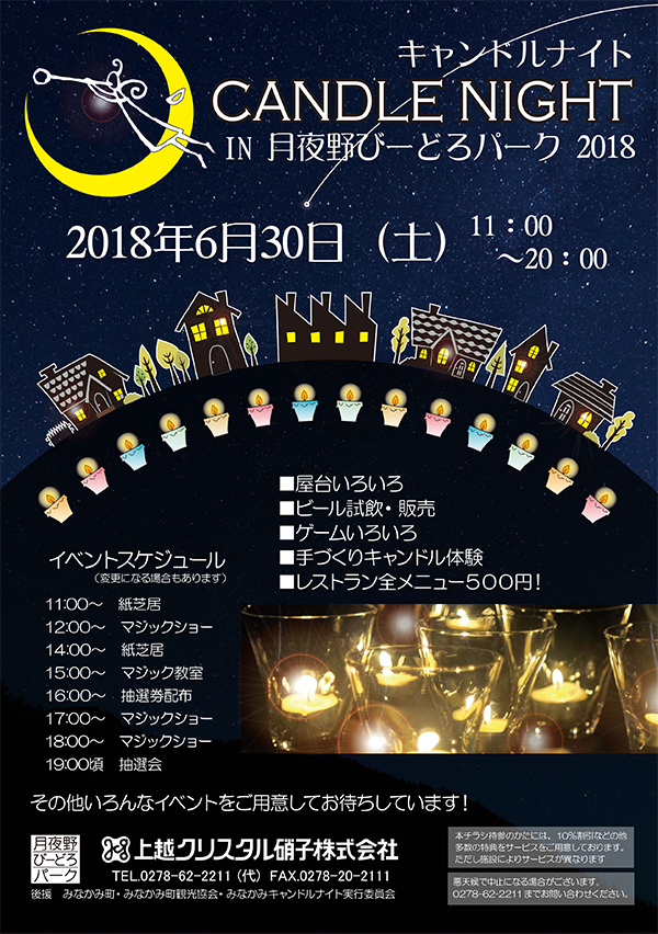 弊社敷地で6月末に行う、みなかみキャンドルナイトのチラシです。